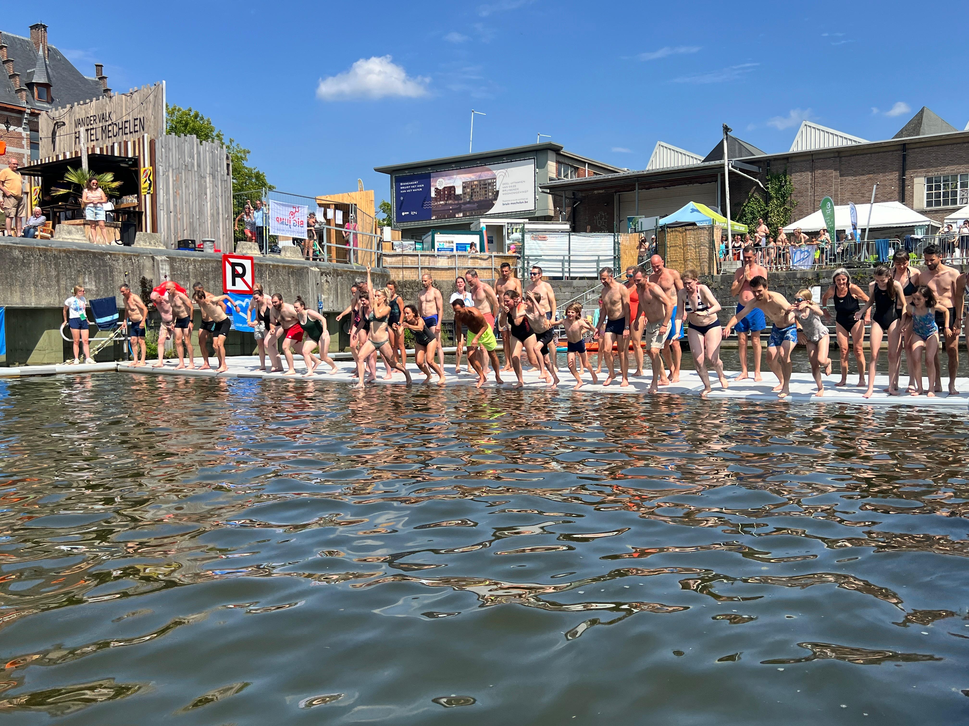 Tijdens de Big Jump sprongen zondagnamiddag tientallen Mechelaars aan de zwemzone van het Keerdok in het water van de Binnendijle. Met hun sprong vroegen ze aandacht voor een betere waterkwaliteit in de waterlopen van hun stad én in heel Vlaanderen. Het initiatief is een samenwerking van GoodPlanet Belgium, Natuurpunt Mechels Rivierengebied en Stad Mechelen.